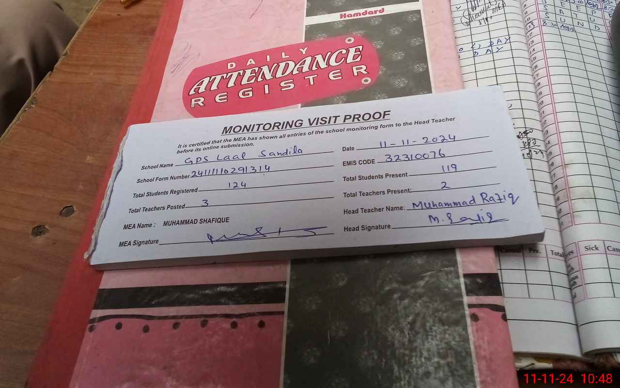 | EMIS Code: 32310076 | Name of School: GPS LAAL SANDILA | |||