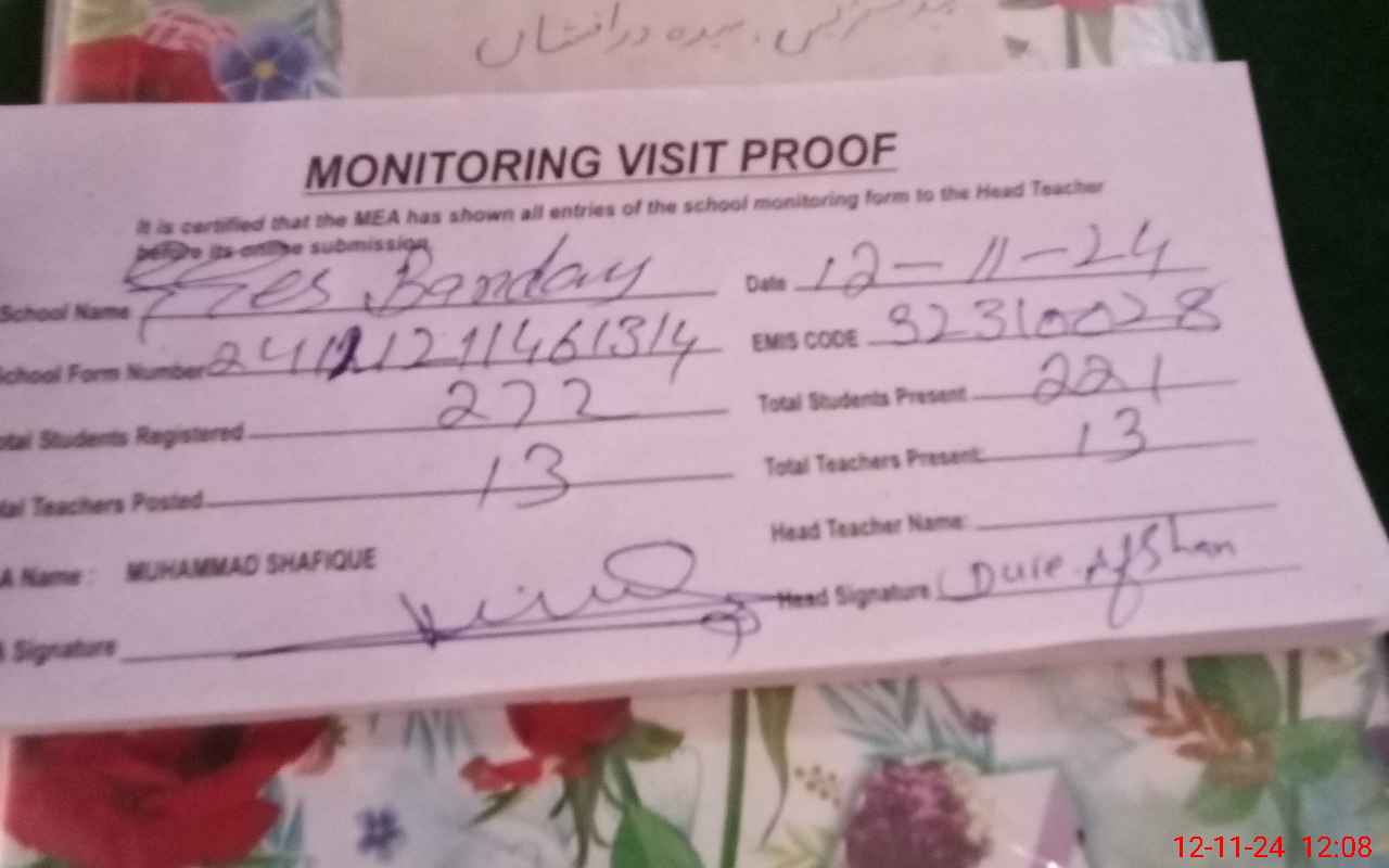 | Attendance Register | Head Teacher | MEA with School | Visit Proof |