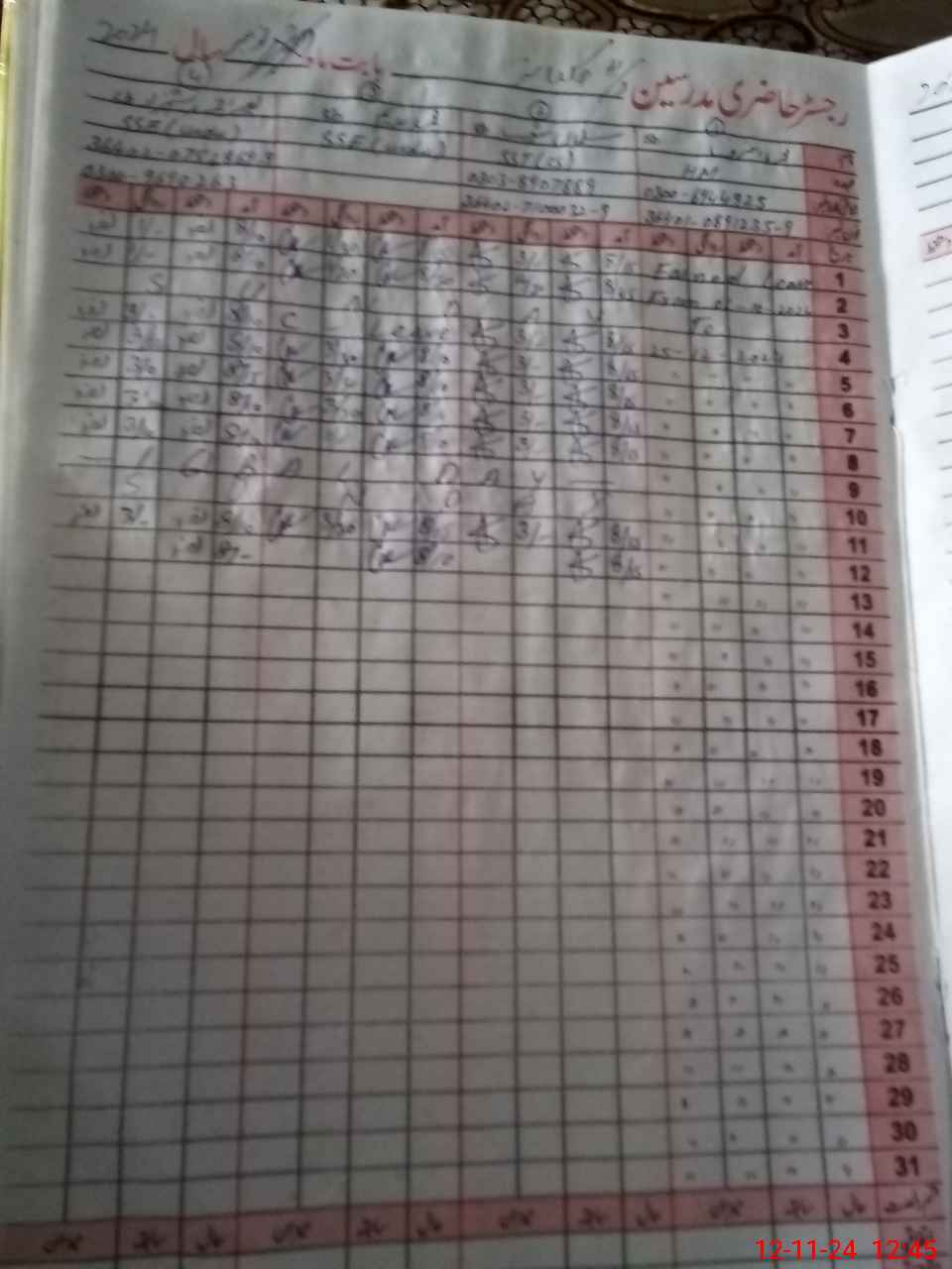 | CNIC | Full Name | Designation | R/C | Absence During Last Calender Month |