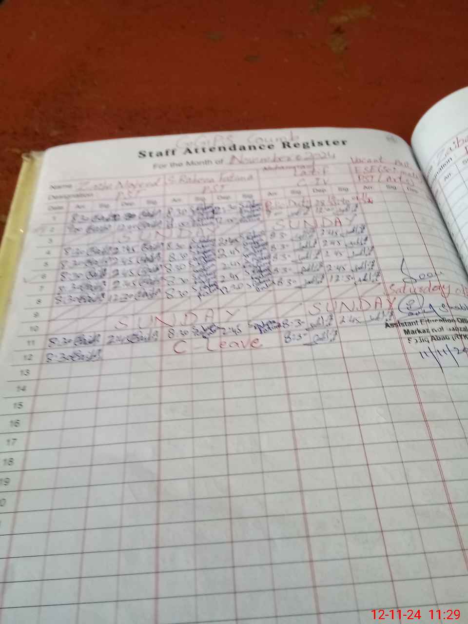 | CNIC | Full Name | Designation | R/C | Absence During Last Calender Month |