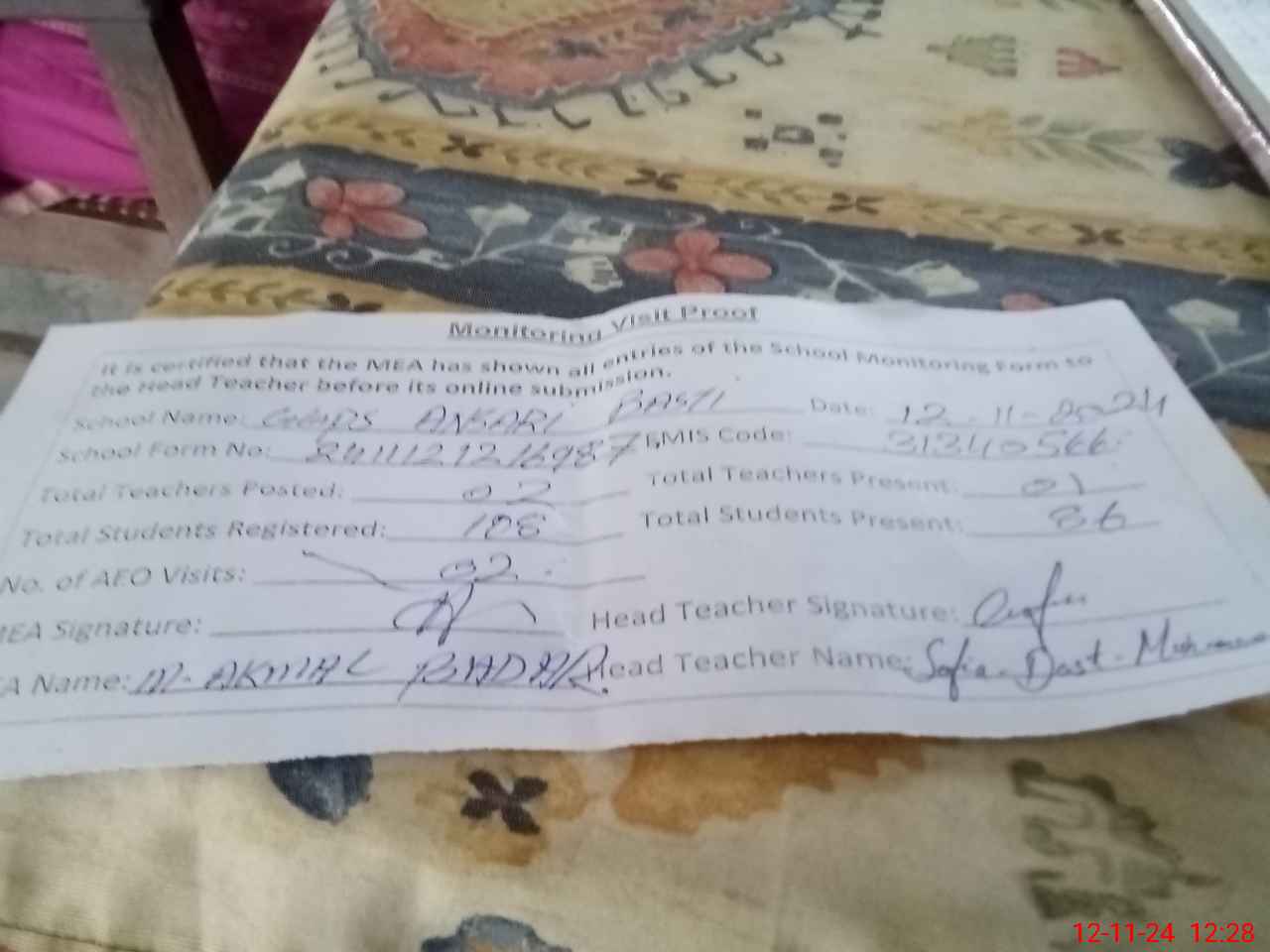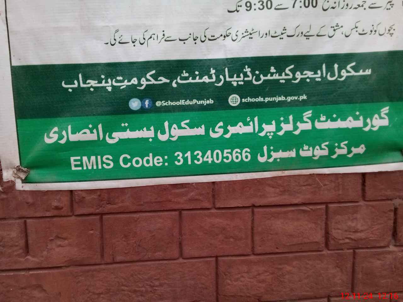 | EMIS Code: 31340566 | Name of School: GGPS ANSARI BASTI | |||