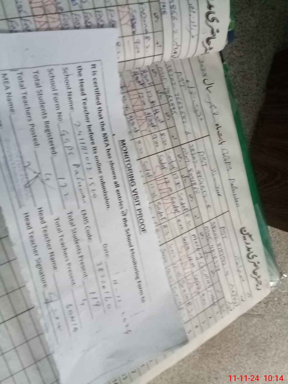 | Attendance Register | Head Teacher | MEA with School | Visit Proof |