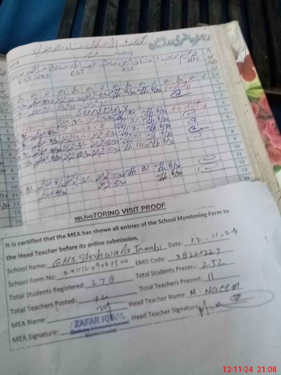 | EMIS Code: 38220227 | Name of School: GHS SHAH WALA JANUBI | |||