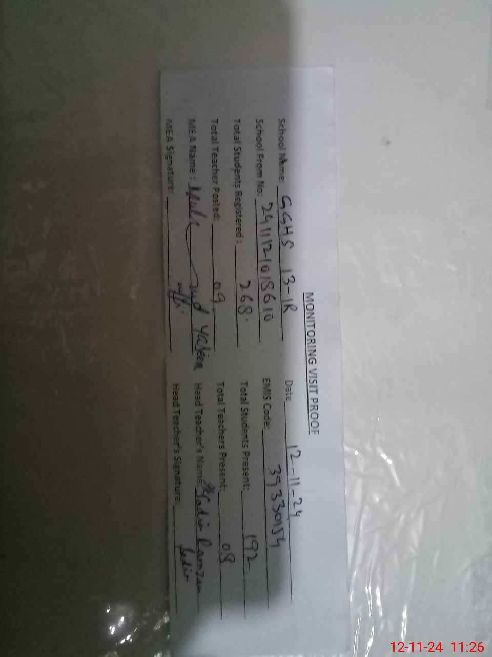 | EMIS Code: 39330154 | Name of School: GGHS CHAK NO.13/1R | |||