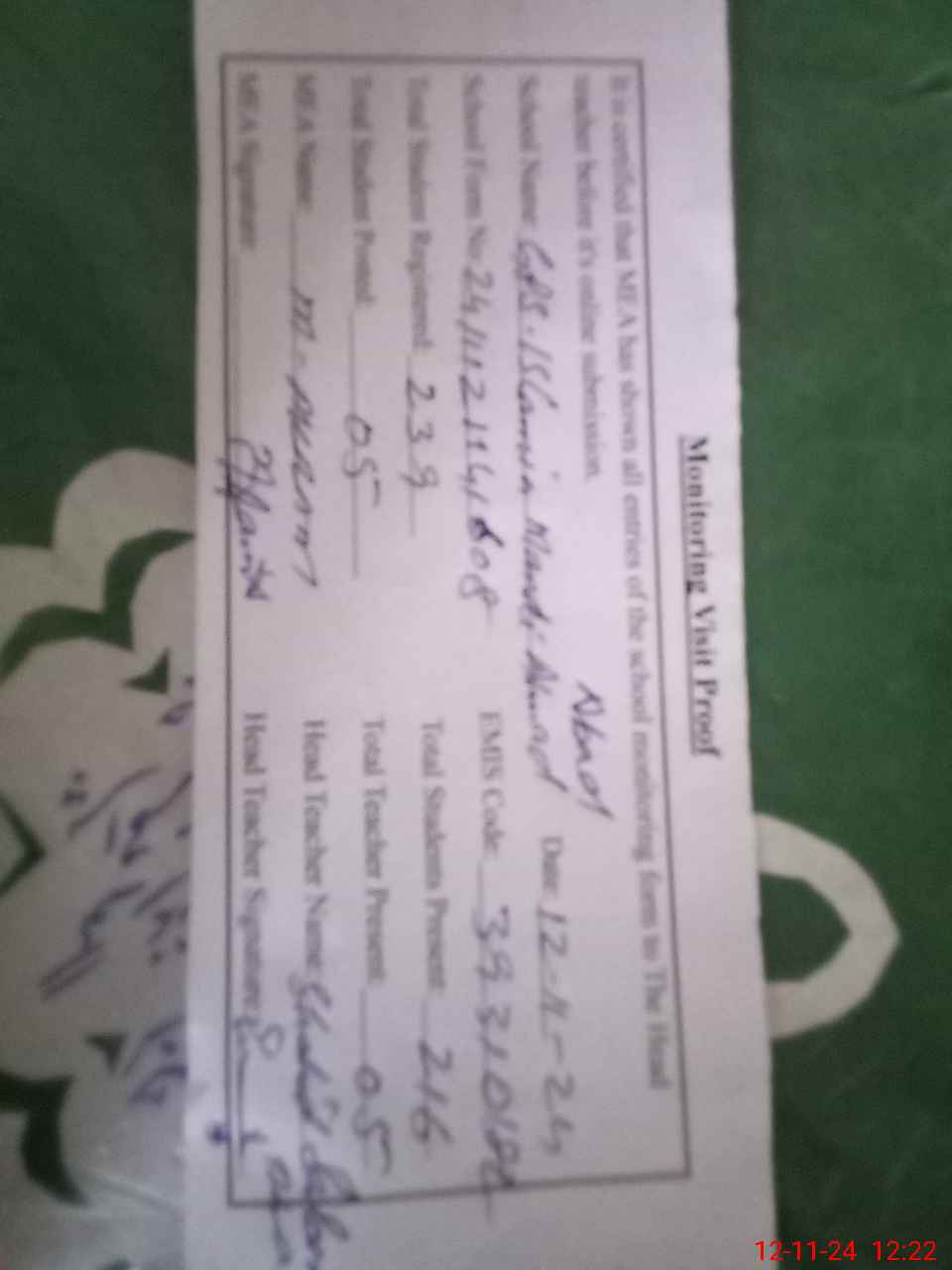 | EMIS Code: 39310182 | Name of School: GPS ISLAMIA AHMED ABAD | |||