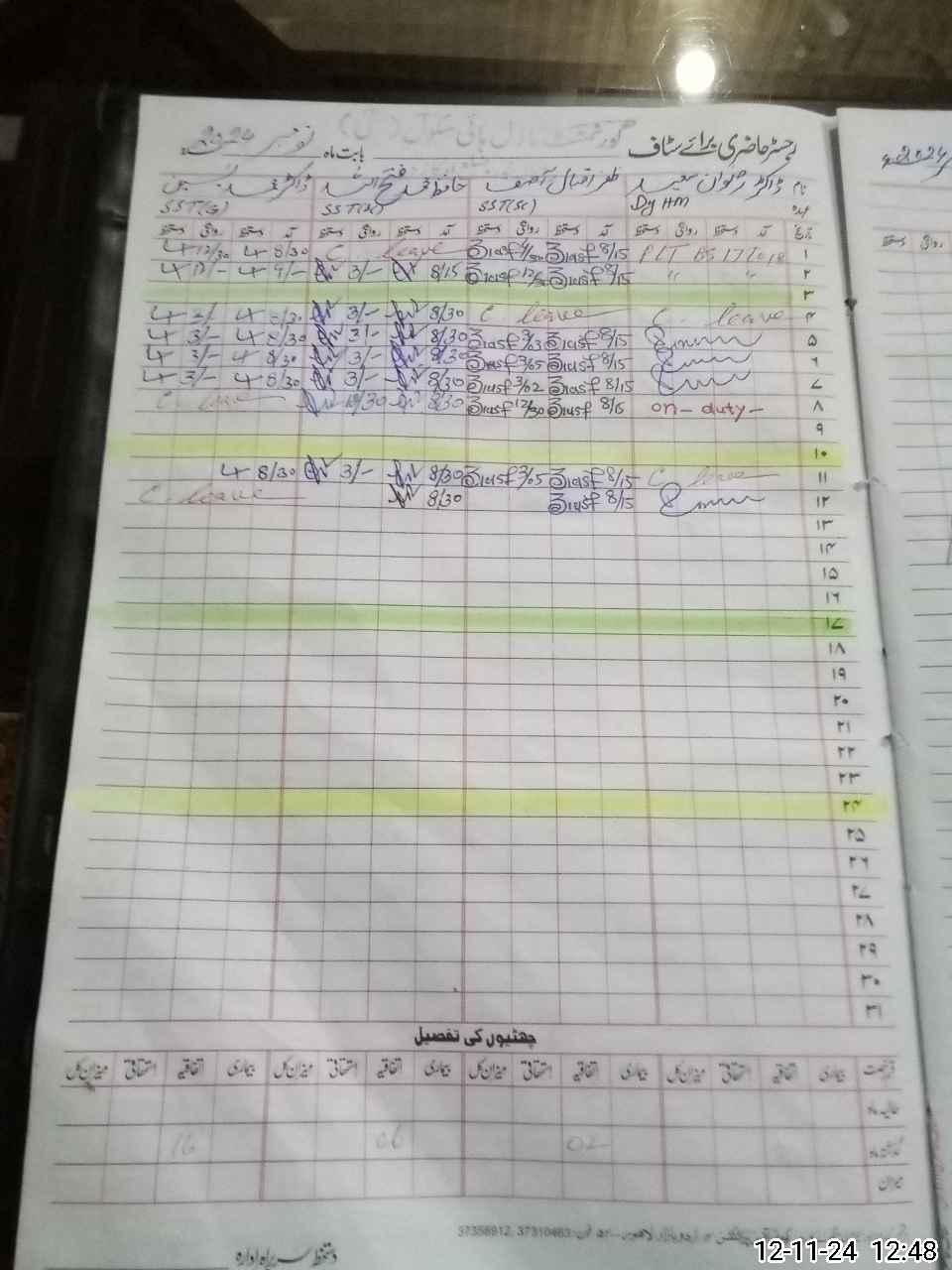 | CNIC | Full Name | Designation | R/C | Absence During Last Calender Month |