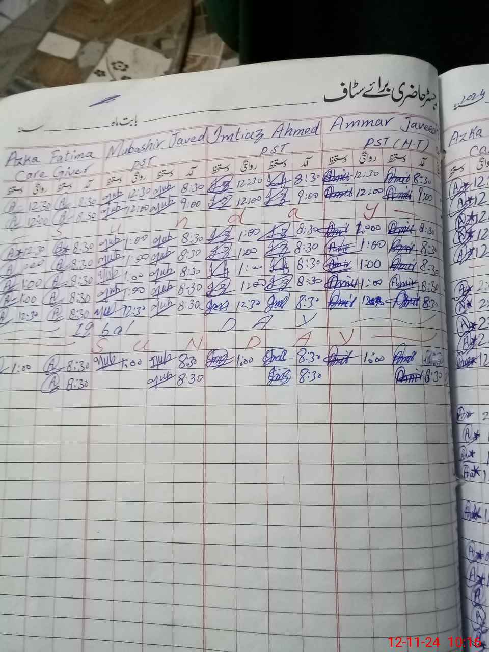 | CNIC | Full Name | Designation | R/C | Absence During Last Calender Month |