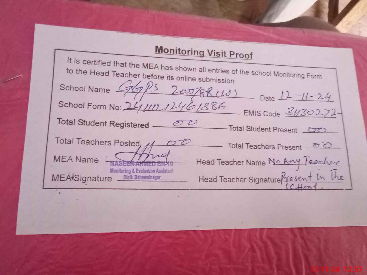 | EMIS Code: 31130272 | Name of School: GGPS CHAK NO 200/8-R W | |||