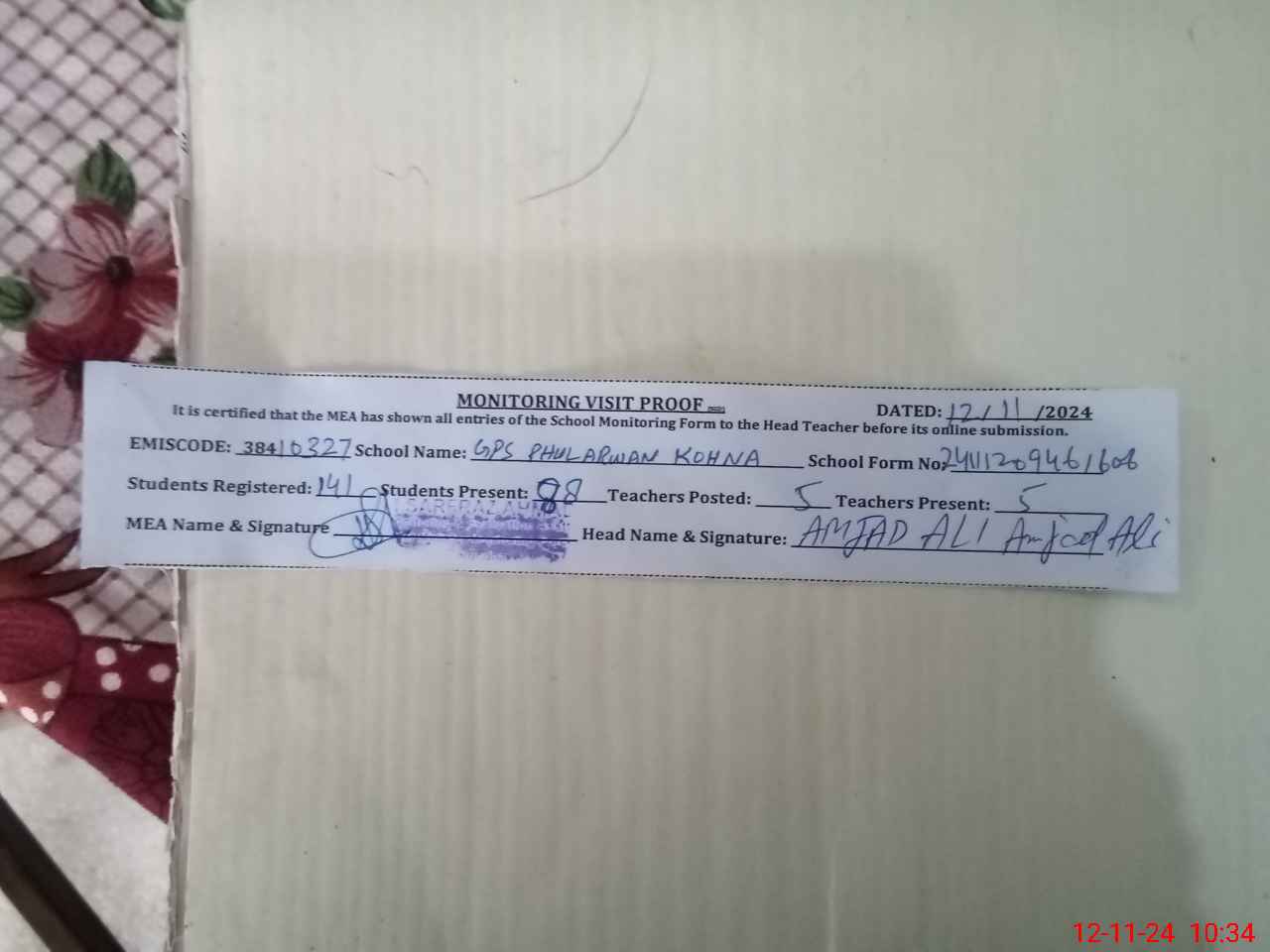 | EMIS Code: 38410327 | Name of School: GPS PHULARWAN KOHNA | |||