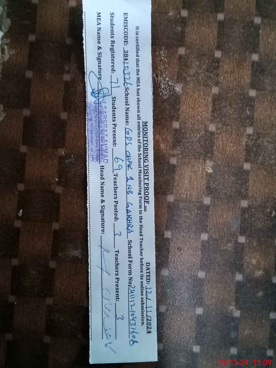 | EMIS Code: 38410326 | Name of School: GPS CHAK NO.1 NB GAKHRA | |||