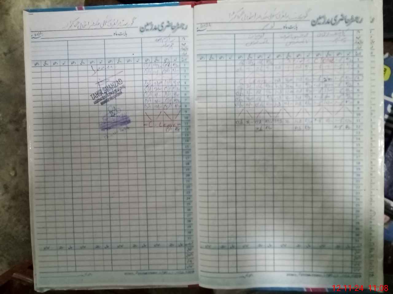 | CNIC | Full Name | Designation | R/C | Absence During Last Calender Month |