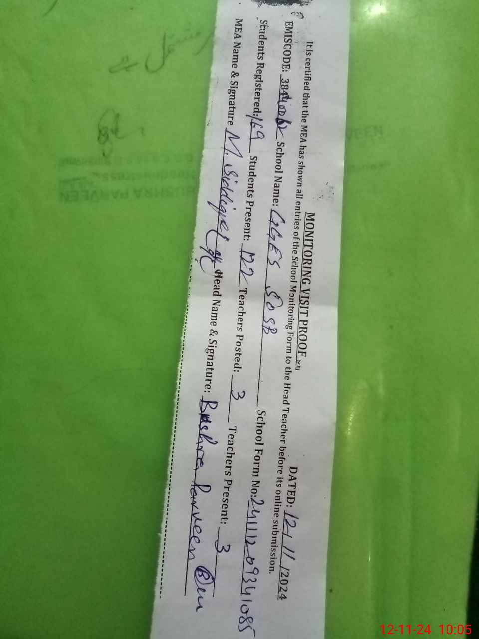 | EMIS Code: 38440062 | Name of School: GGES CHAK NO.50 SB | |||