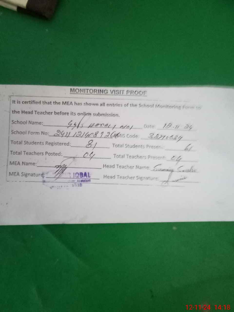 | EMIS Code: 38210634 | Name of School: GGPS NO. 1 HADALI | |||