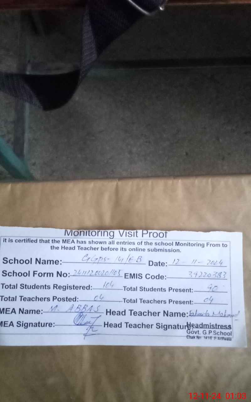 | EMIS Code: 39220383 | Name of School: GGPS 141 EB TEH ARIFWALA | |||