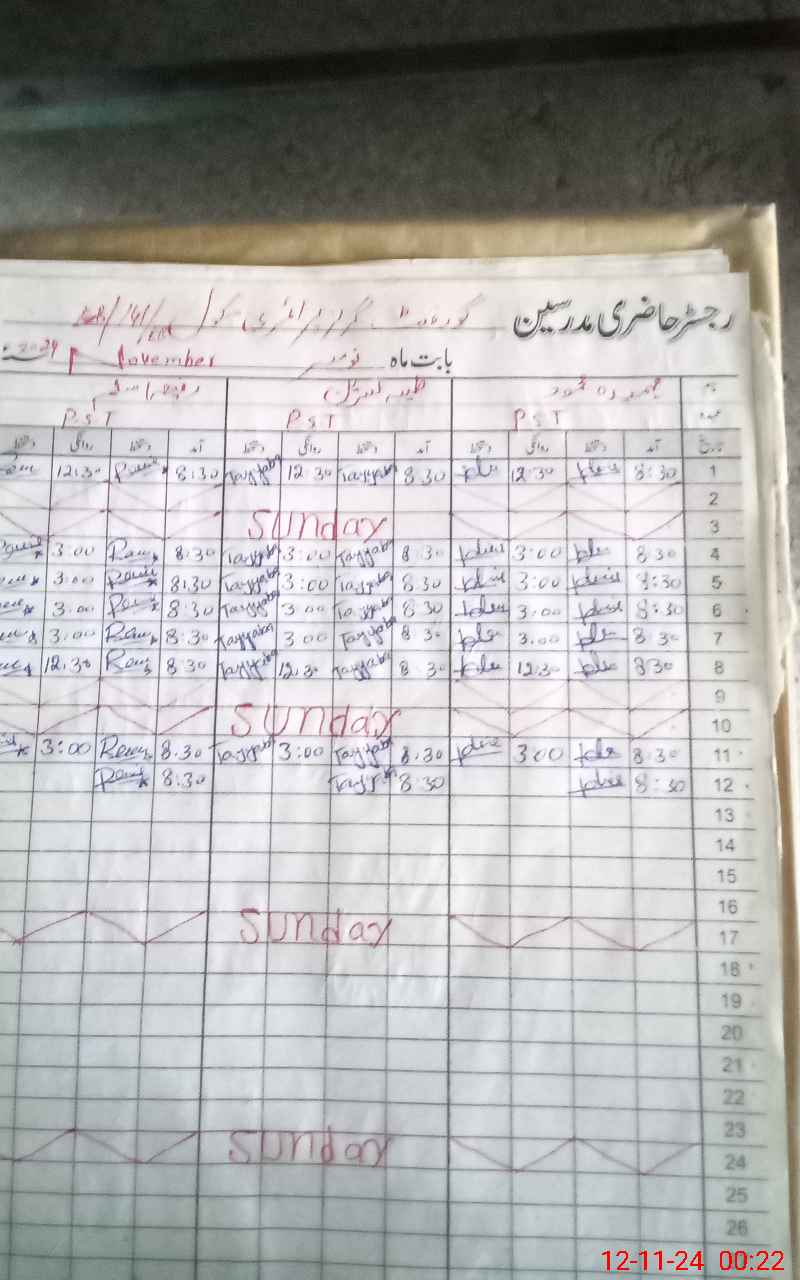 | CNIC | Full Name | Designation | R/C | Absence During Last Calender Month |
