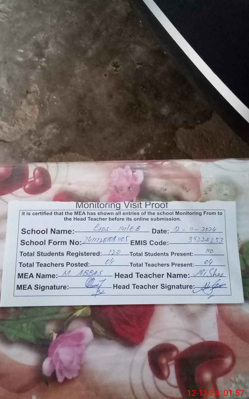 | EMIS Code: 39220253 | Name of School: GPS 141 EB | |||