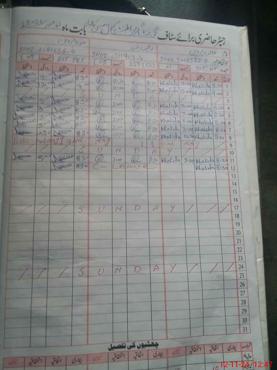 | 31**** | Sa**** Gh**** Mu**** | PST | Regular | 1 | 0 | 0 | 0 | 0 | 0 | 0 | 0 | 1 | Casual |