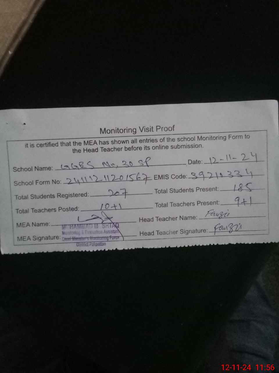 | Certified that this School was Inspected by the Undersigned MEA/DMO Today and the Information Stated Above is as Per Record. | |||||