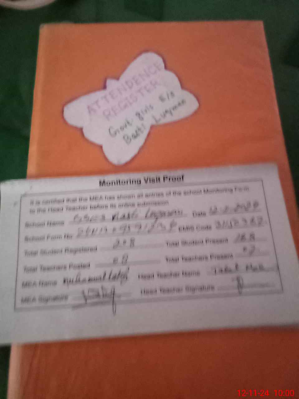 | Attendance Register | Head Teacher | MEA with School | Visit Proof |