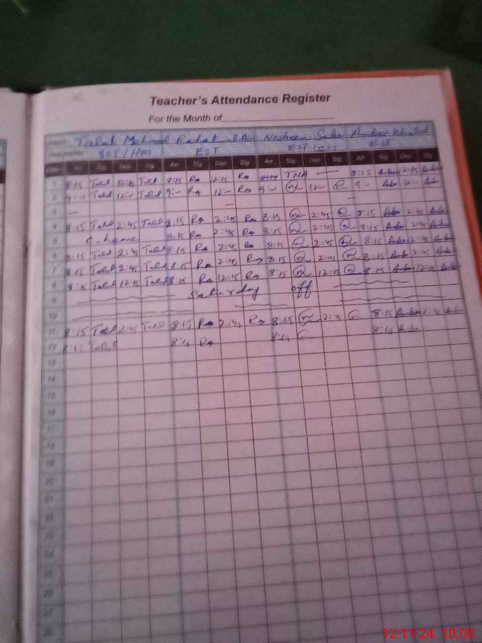 | 31**** | Bu**** Ma**** | PST | Regular | 0 | 0 | 0 | 0 | 0 | 0 | 0 | 0 | 0 | Casual |