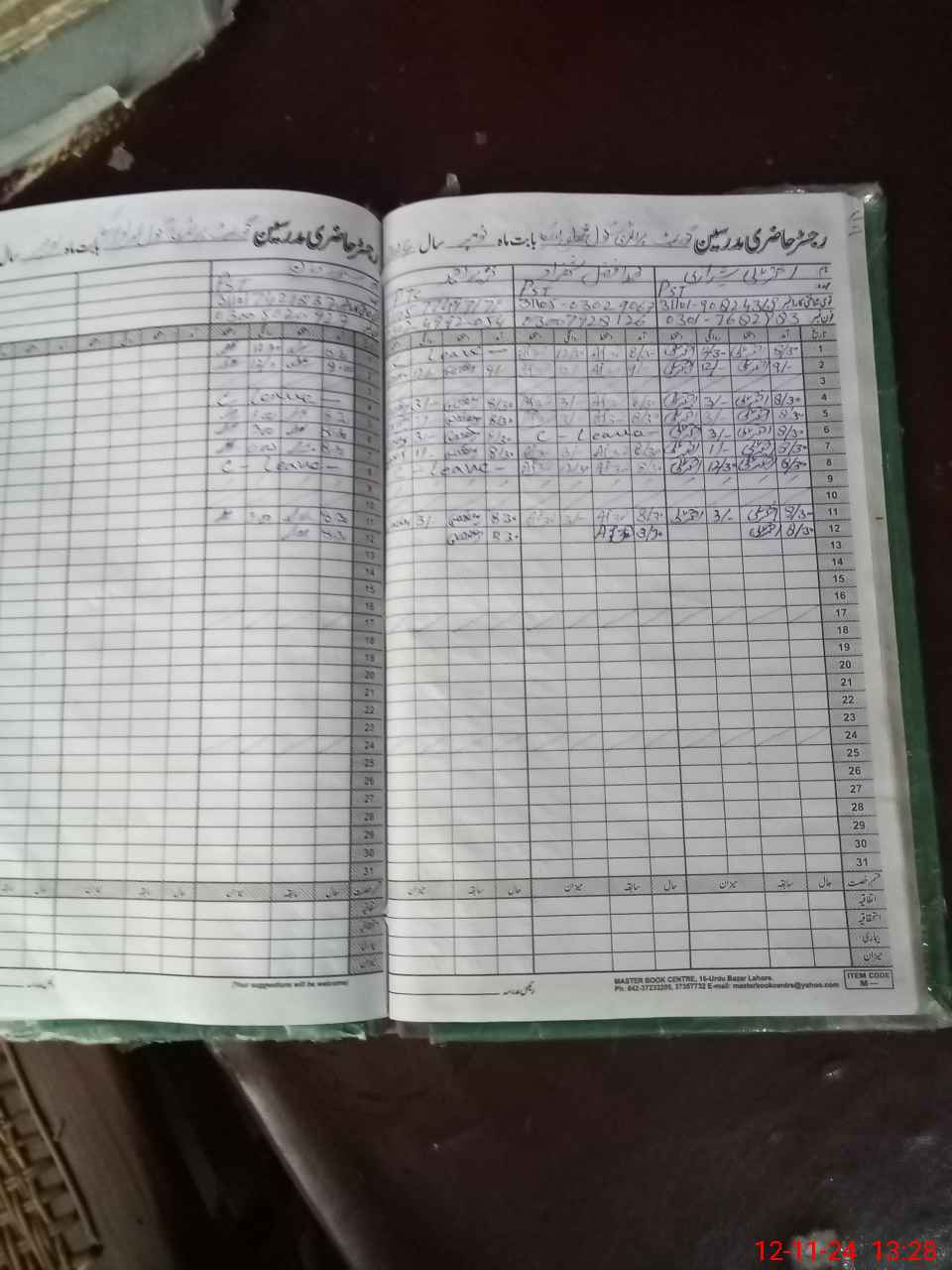| CNIC | Full Name | Designation | R/C | Absence During Last Calender Month |