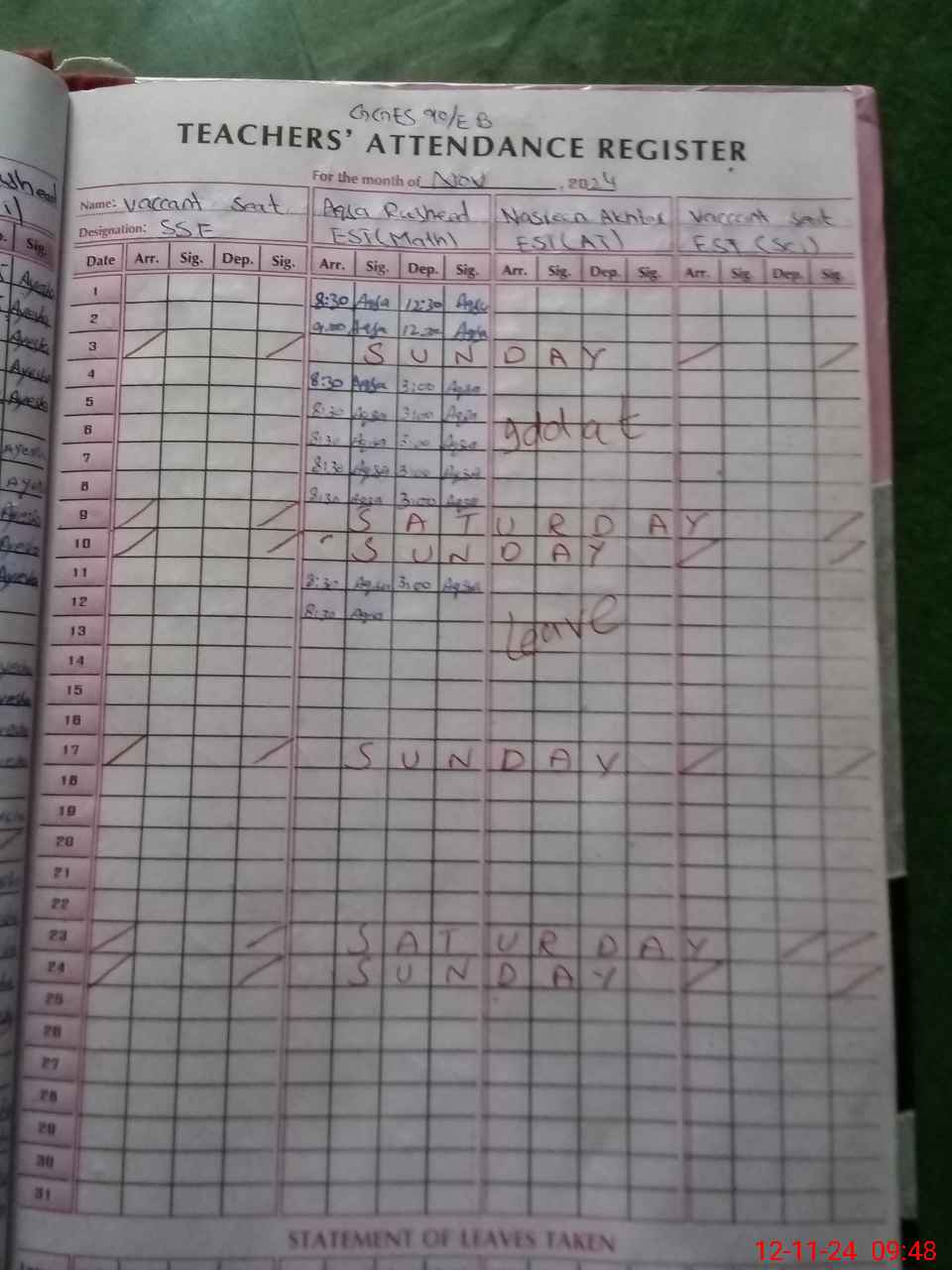 Leave Type | Remarks for Today (Leave,Training, Exam,Absent,Late, Other Duty) |