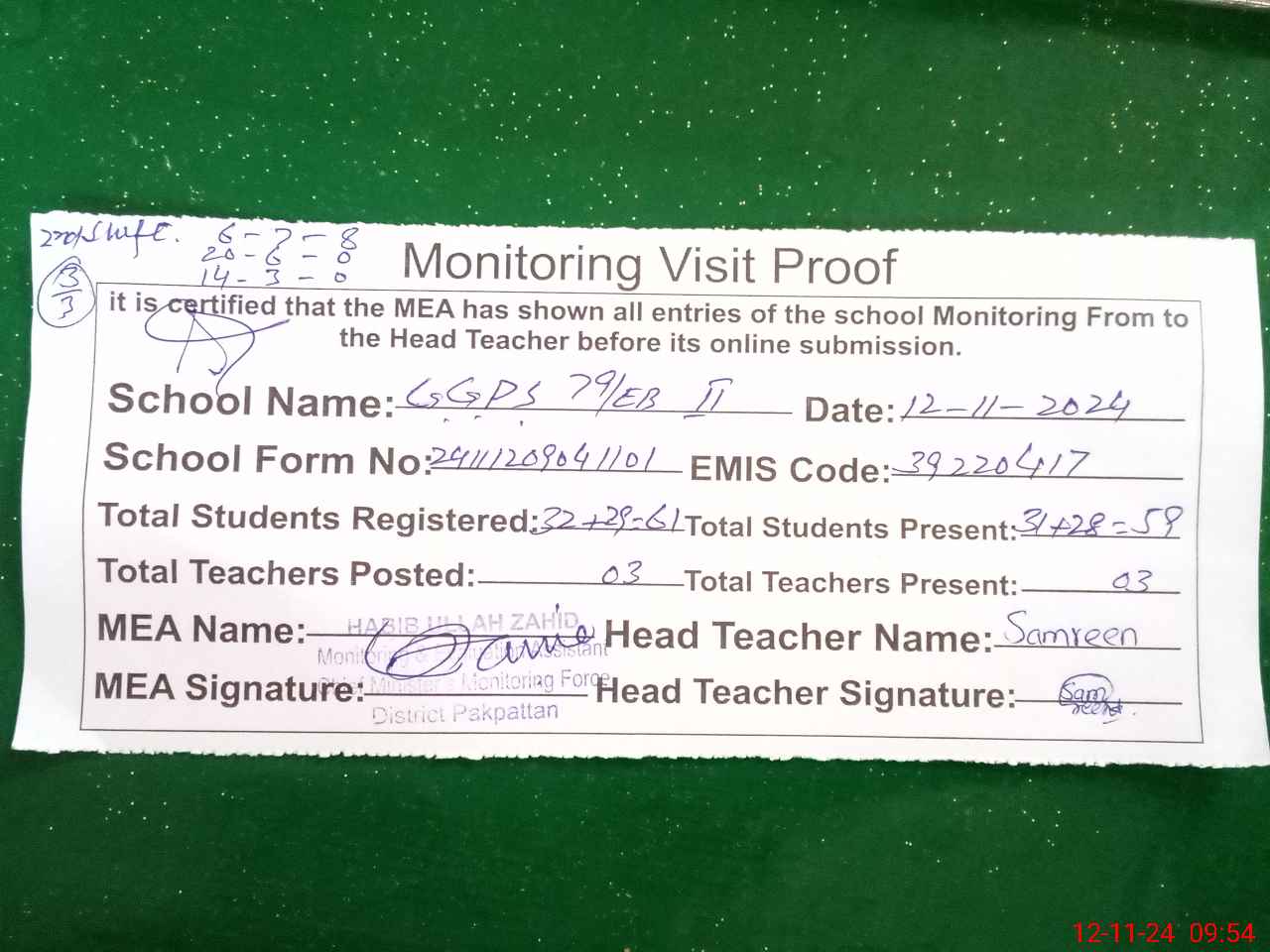 | EMIS Code: 39220417 | Name of School: GGPS 79 / EB NO.2 KORAN WALI BASTI P.O 69 EB | |||
