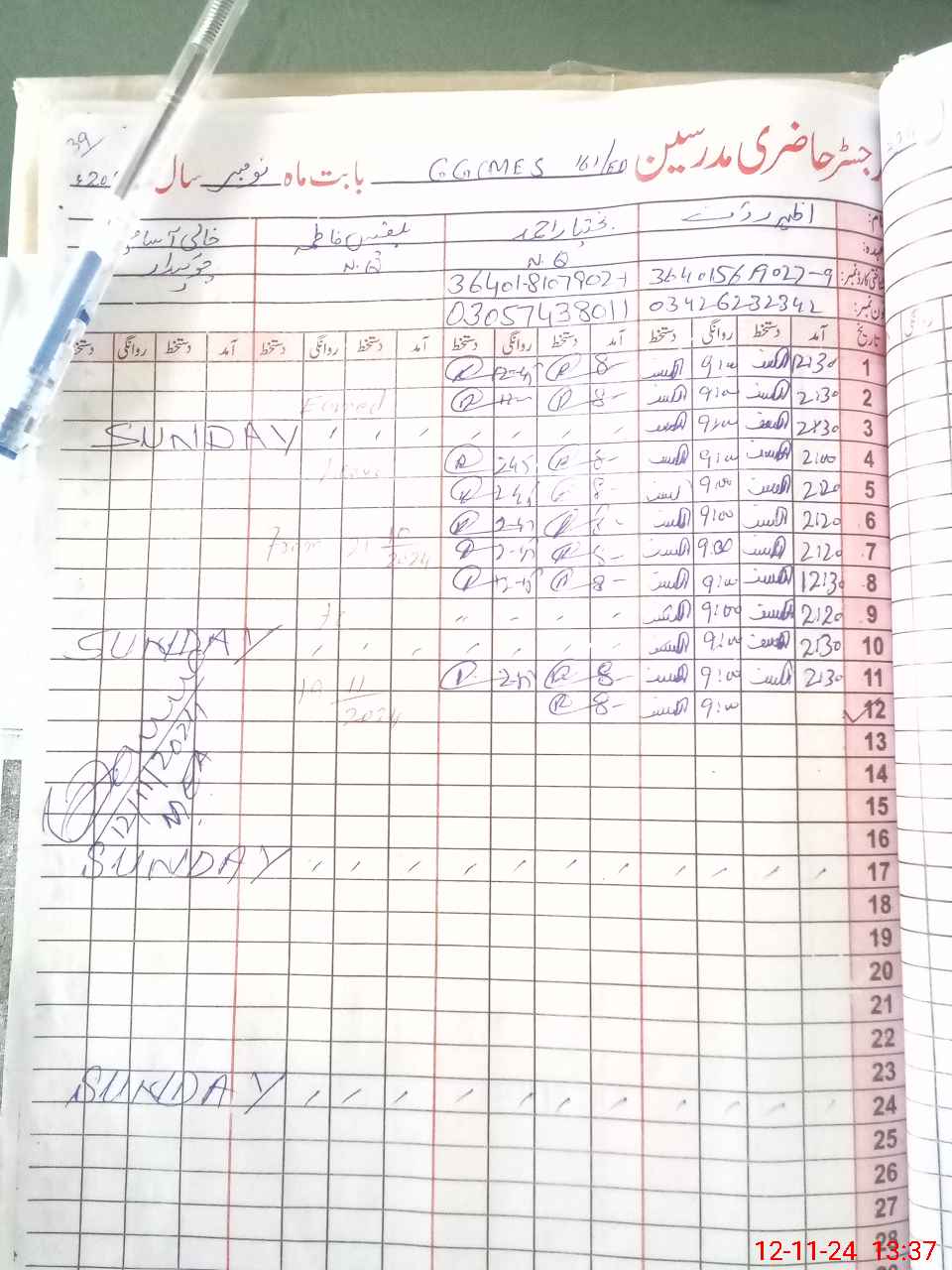 | CNIC | Full Name | Designation | R/C | Absence During Last Calender Month |