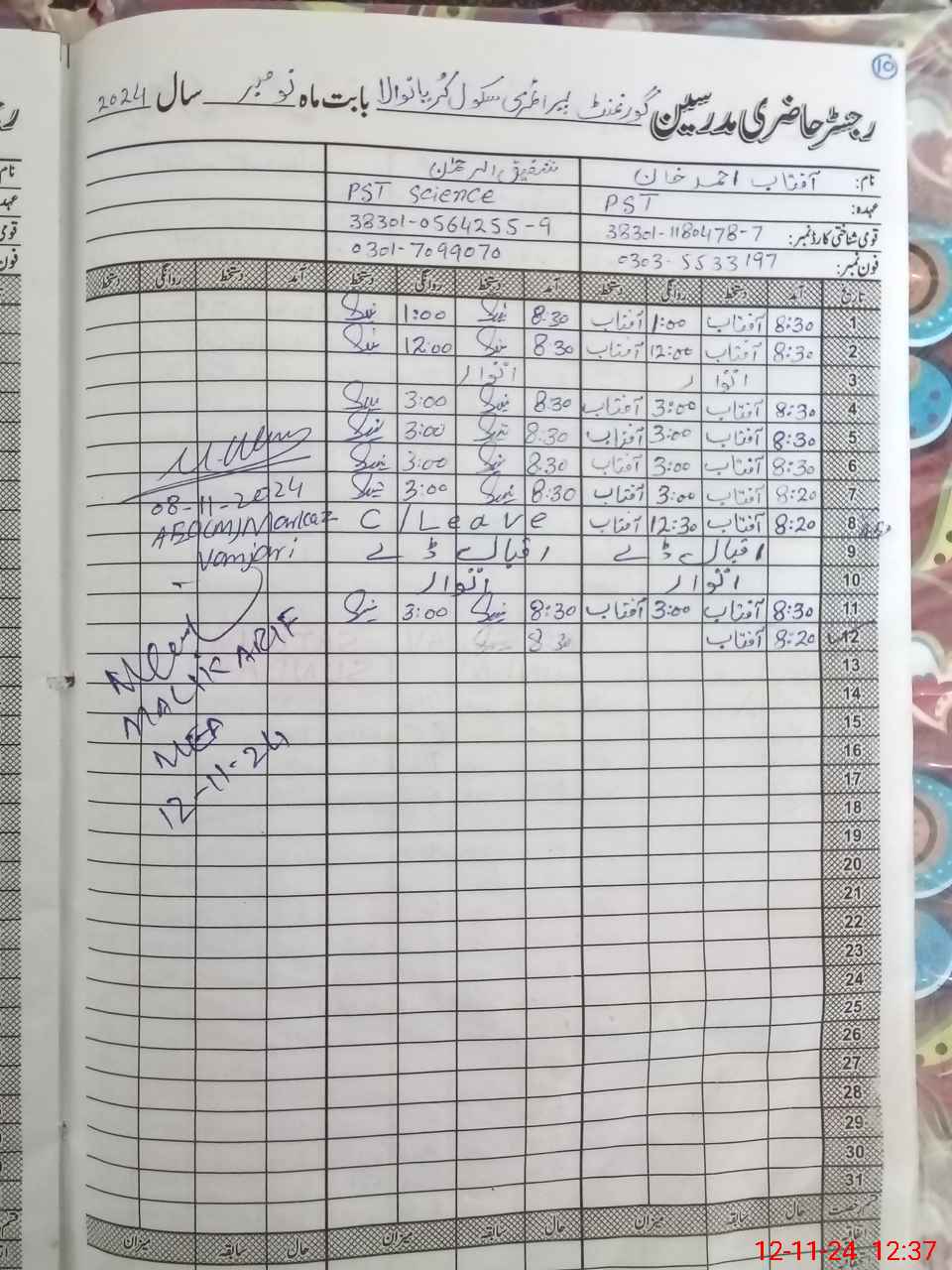 | Name: AF**** AH**** KH**** Designation: (School Headmaster's/Headmistress's) PST Phone/Cell Number: 03**** |