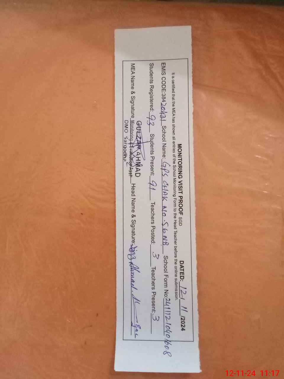 | EMIS Code: 38420431 | Name of School: GPS CHAK NO.56 NB | |||