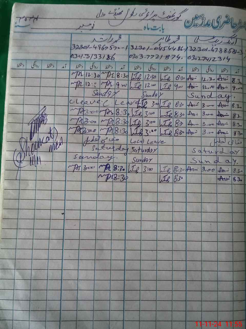 | CNIC | Full Name | Designation | R/C | Absence During Last Calender Month |