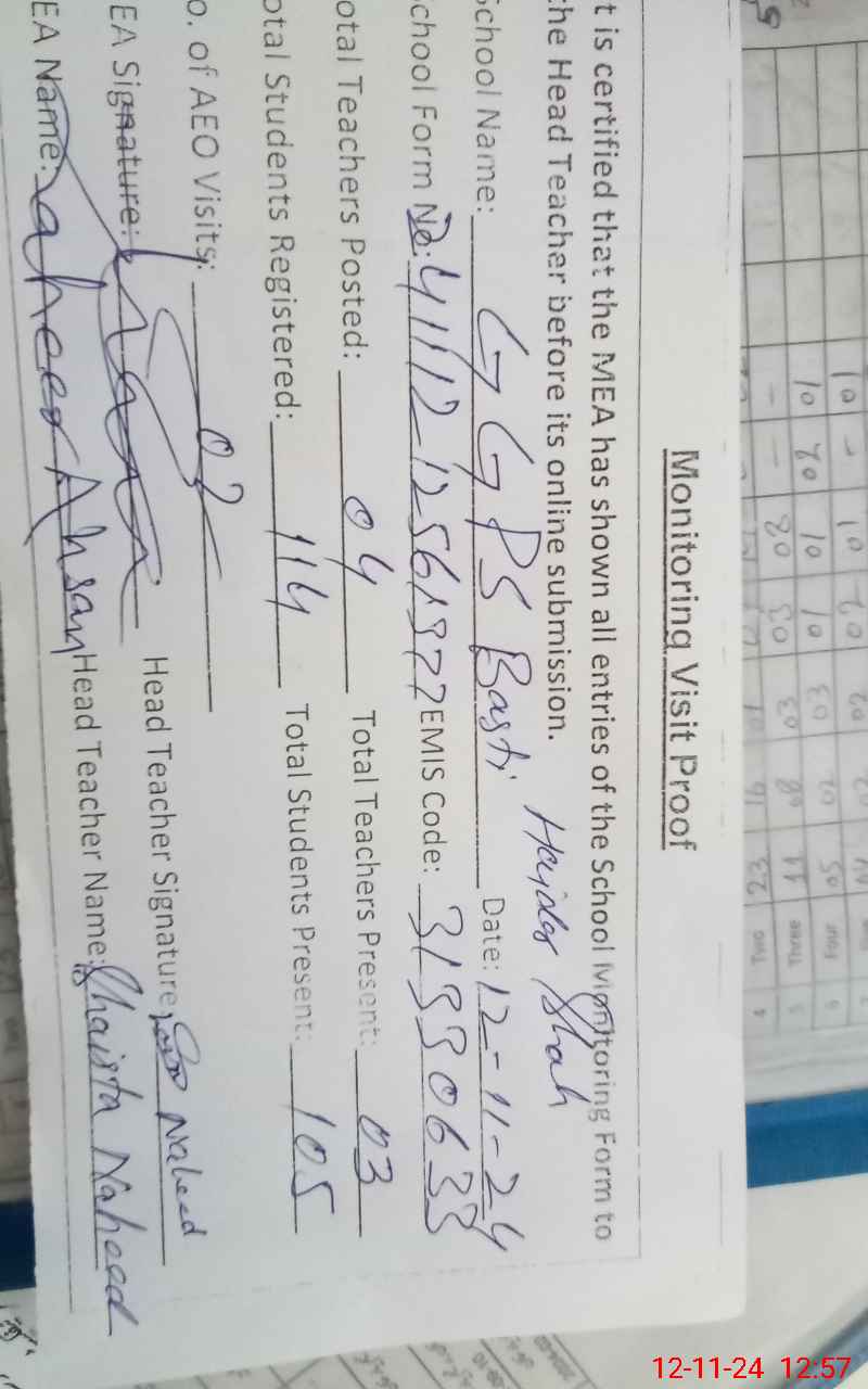 | EMIS Code: 31330633 | Name of School: GGPS BASTI HYDER SHAH | |||