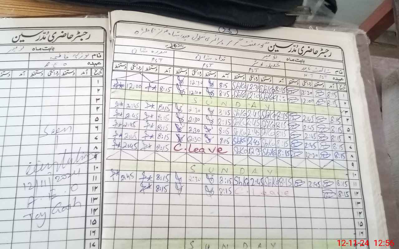 | CNIC | Full Name | Designation | R/C | Absence During Last Calender Month |