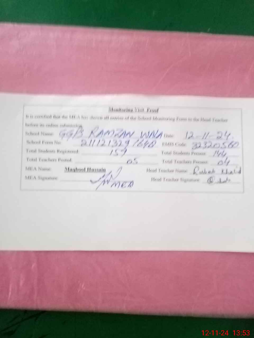 | EMIS Code: 32320560 | Name of School: GGPS RAMZAN WALA | |||