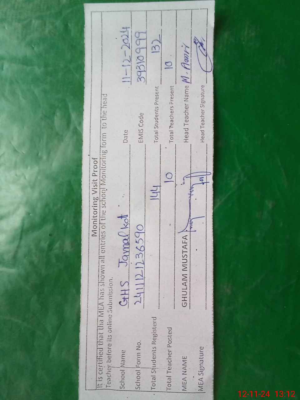 | EMIS Code: 39310999 | Name of School: GHS JAMAL KOT | |||
