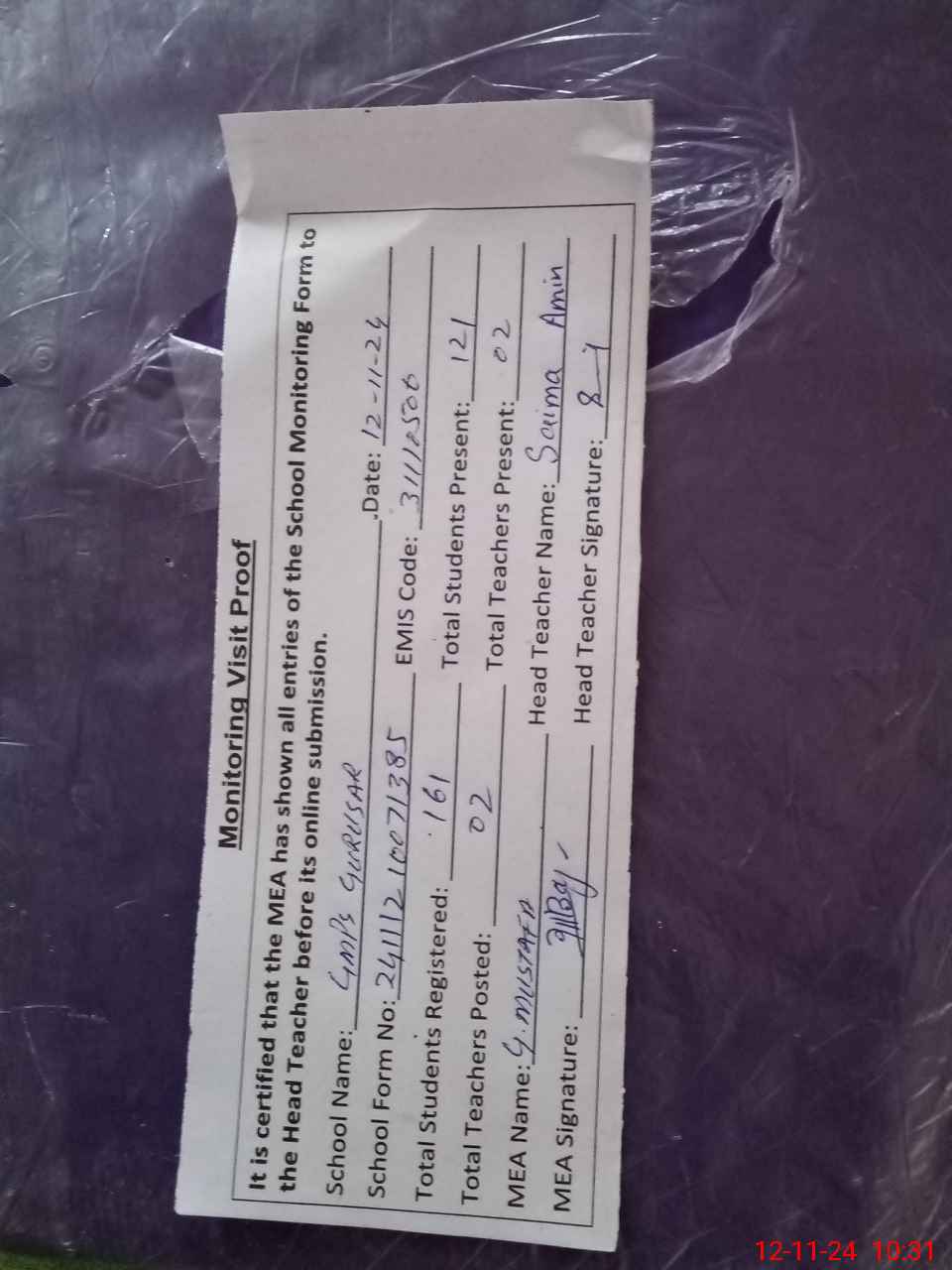 | EMIS Code: 31110506 | Name of School: GMPS GURU SAR GIRDHARI WALA EAST | |||