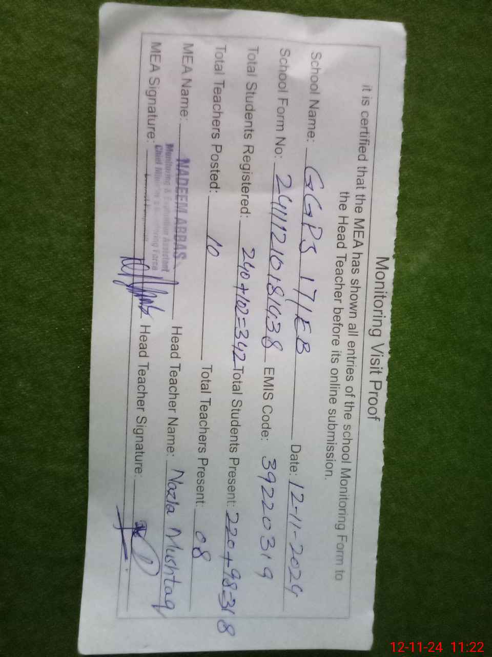 | EMIS Code: 39220319 | Name of School: GGES 17 EB | |||