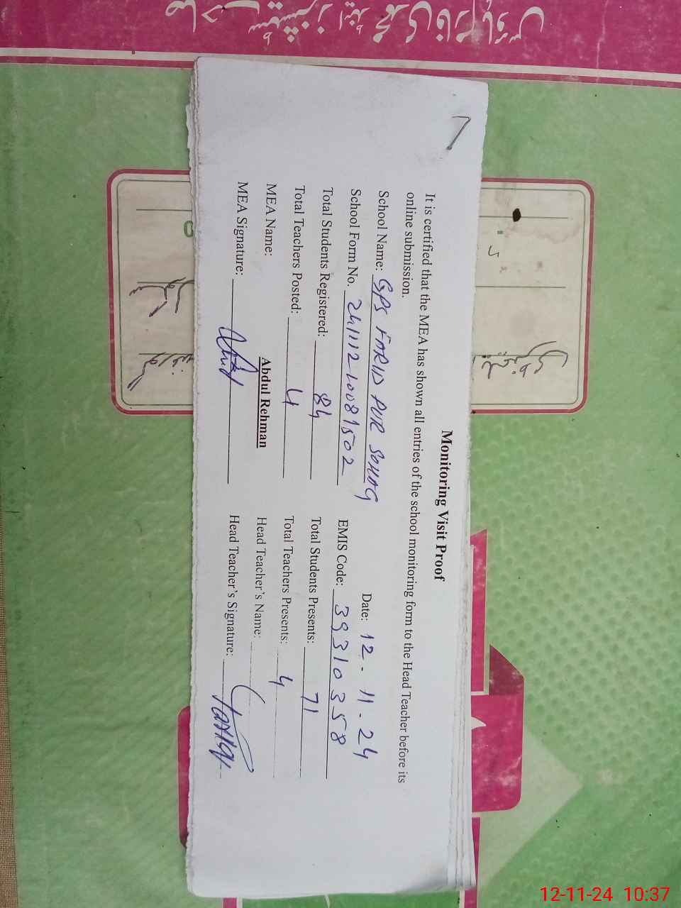 | EMIS Code: 39310358 | Name of School: GPS FARID PUR SOHAG | |||