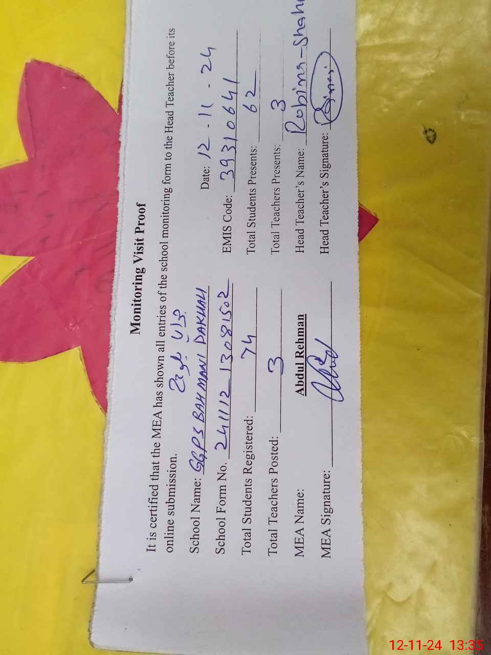 | EMIS Code: 39310641 | Name of School: GGPS BAHMANI DAKHLI JOWAYA BALOCH | |||