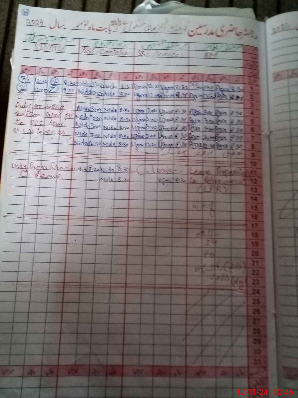 | 35**** | Fa**** Ak**** | PST | Regular | 31 | 0 | 0 | 31 | 0 | 0 | 0 | 0 | 0 | Maternity |