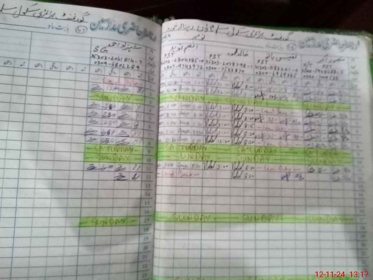| CNIC | Full Name | Designation | R/C | Absence During Last Calender Month |