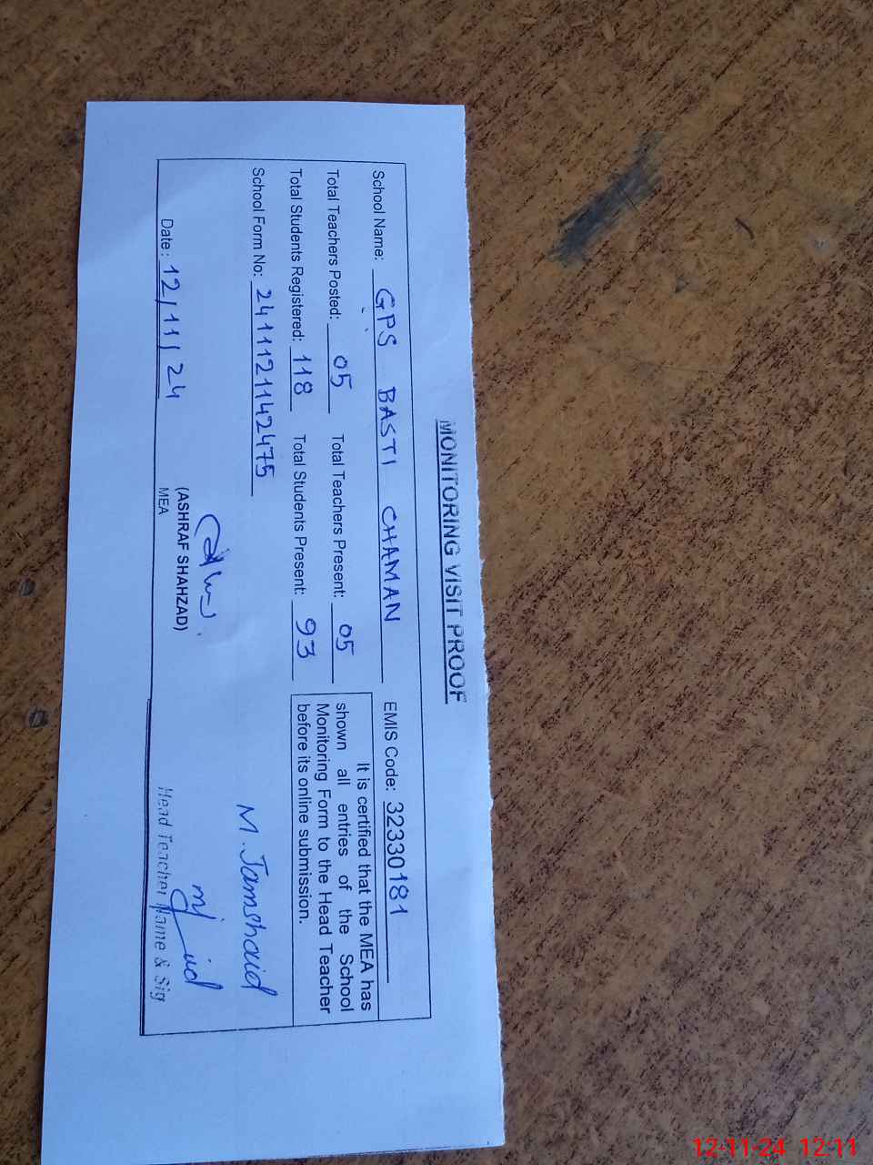 | EMIS Code: 32330181 | Name of School: GPS BASTI CHAMMAN | |||