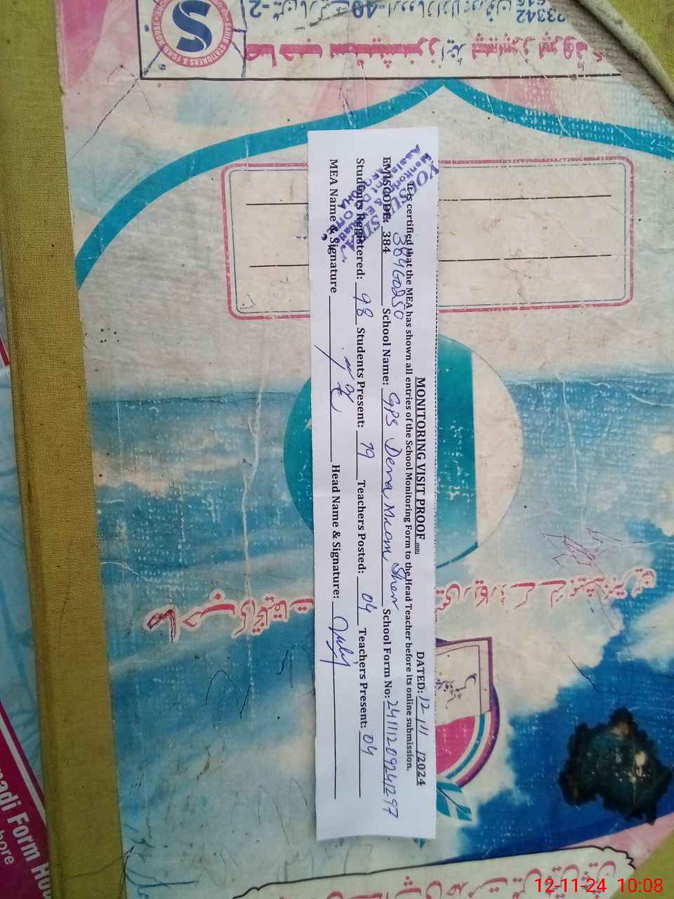 | EMIS Code: 38460250 | Name of School: GPS DERA MIAN SHER | |||