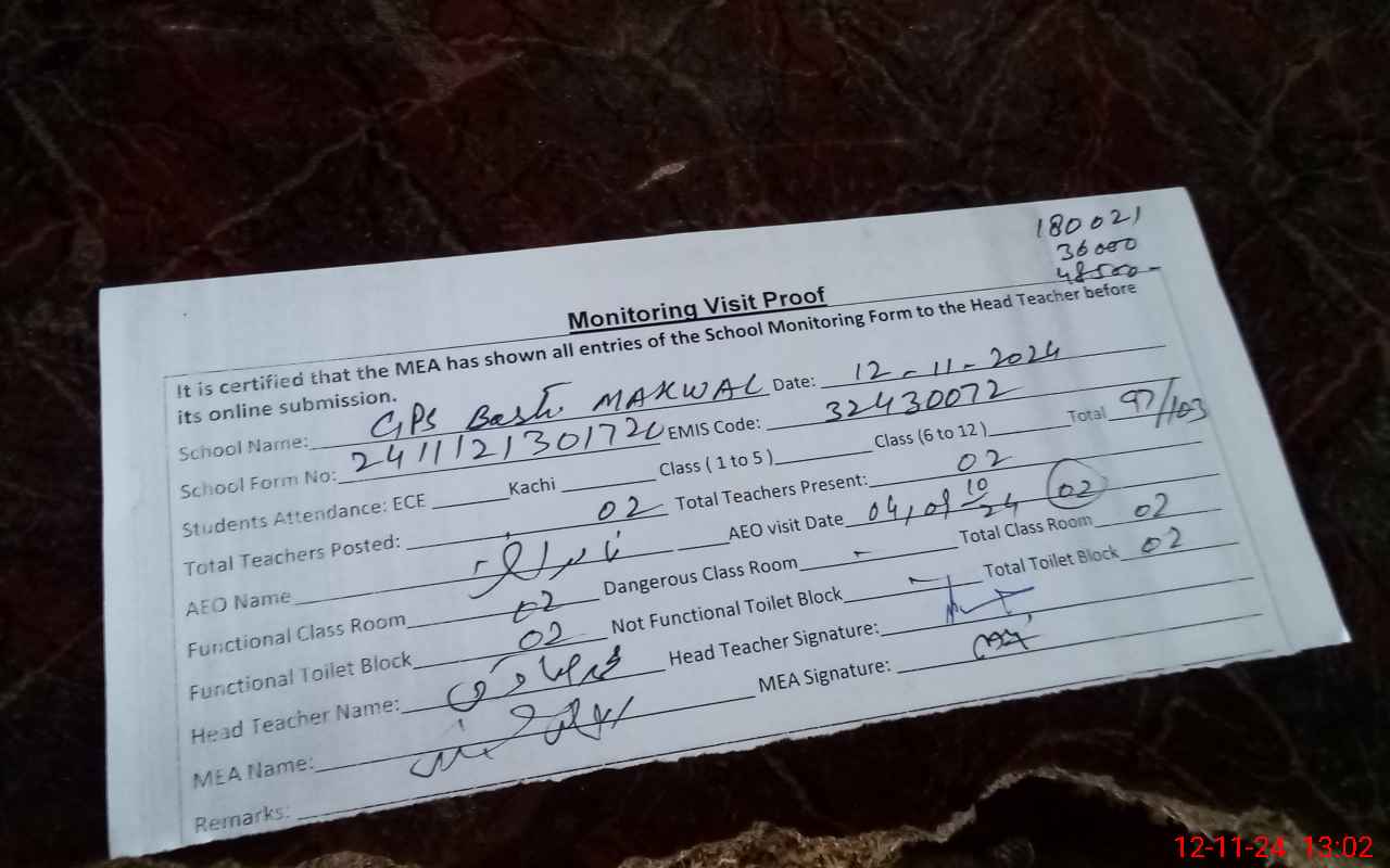 | EMIS Code: 32430072 | Name of School: GPS BASTI MAKWAL | |||