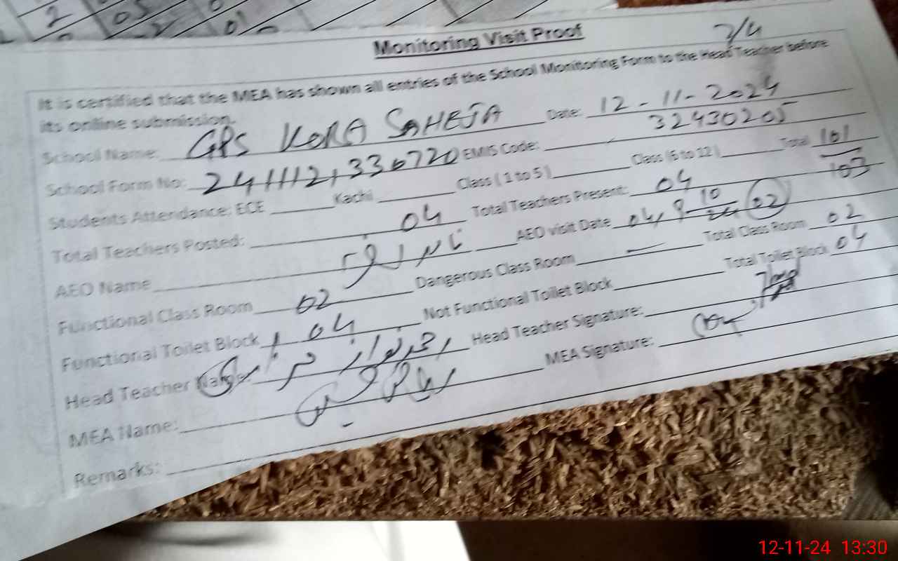 | EMIS Code: 32430205 | Name of School: GPS KORA SAHEJA | |||
