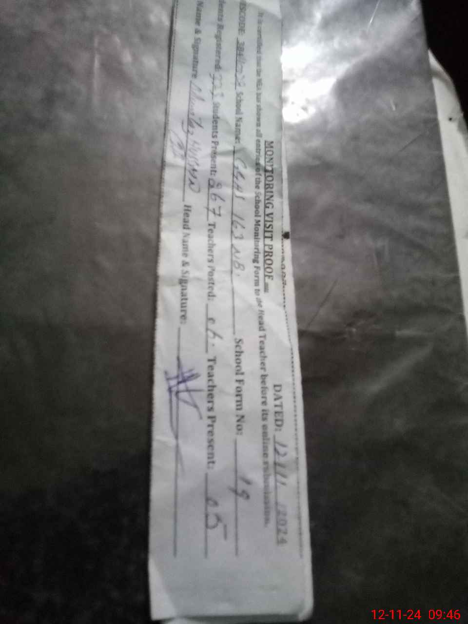 | Attendance Register | Head Teacher | MEA with School | Visit Proof |
