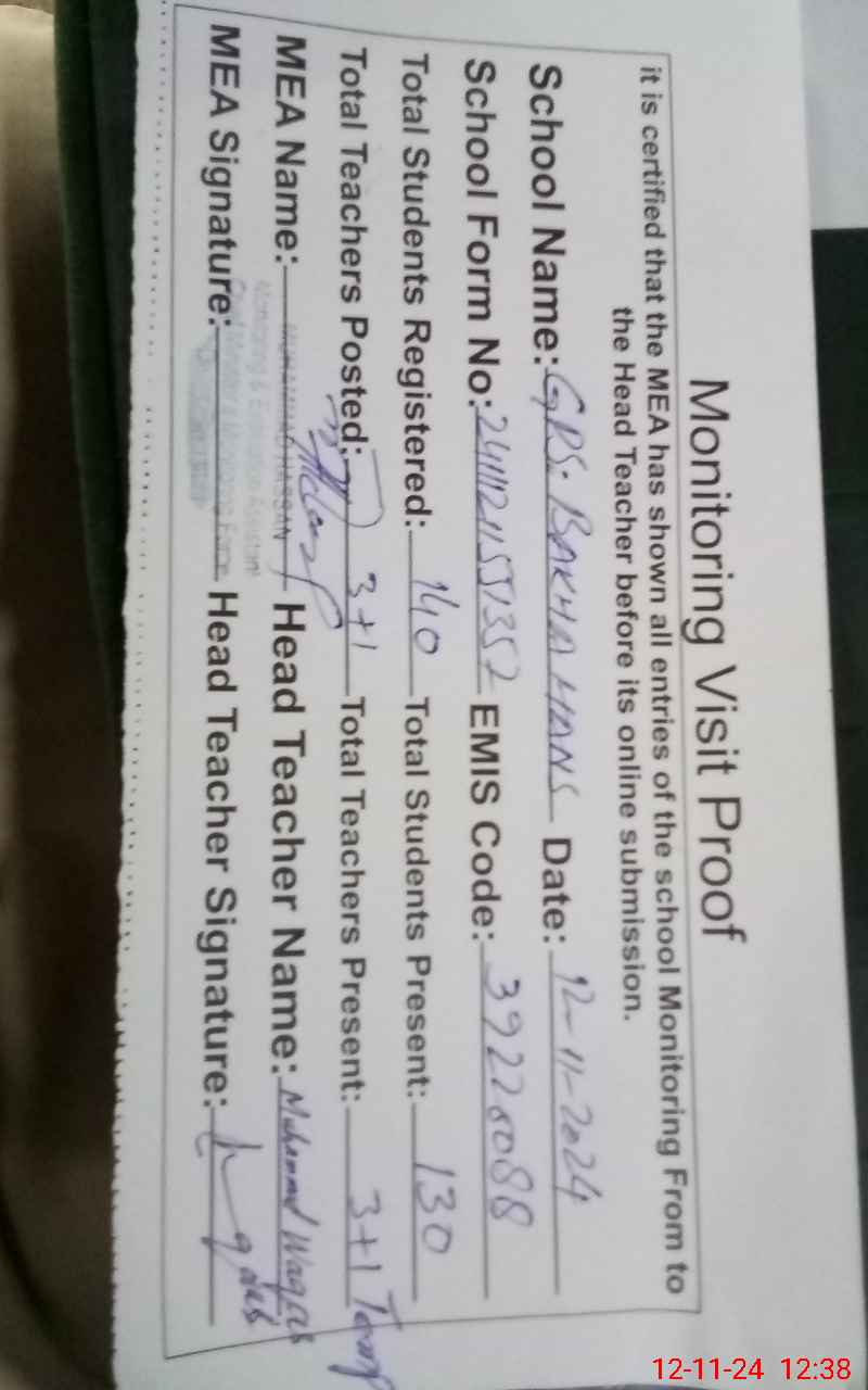 | EMIS Code: 39220088 | Name of School: GPS BAKHA HANS | |||