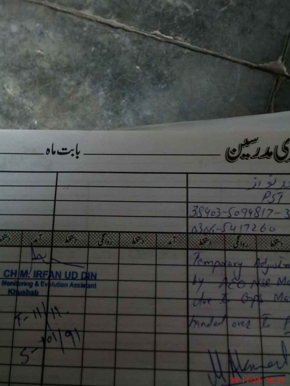 | CNIC | Full Name | Designation | R/C | Absence During Last Calender Month |