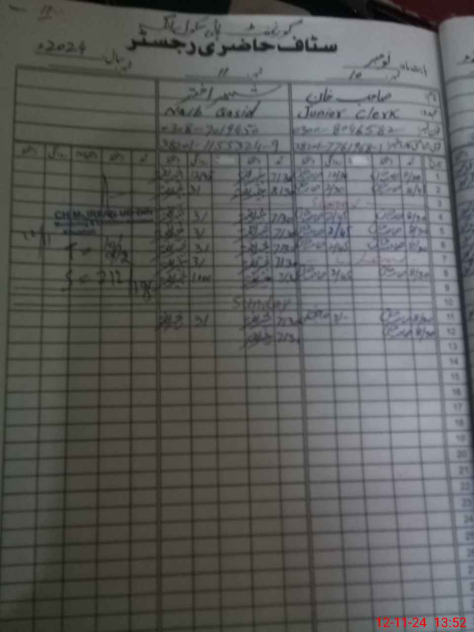 | CNIC | Full Name | Designation | R/C | Absence During Last Calender Month |