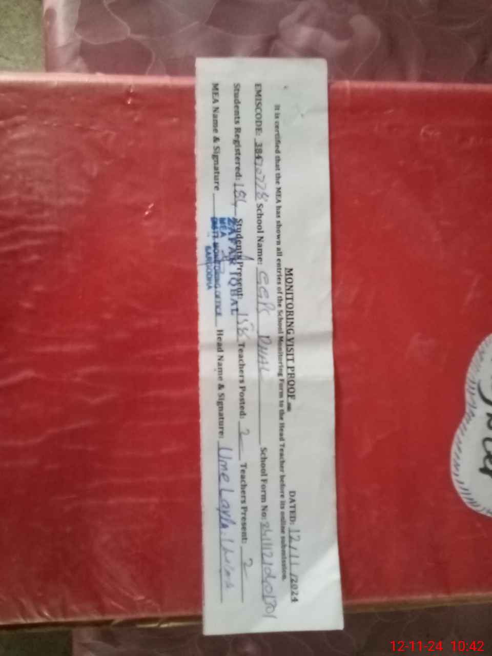 | Certified that this School was Inspected by the Undersigned MEA/DMO Today and the Information Stated Above is as Per Record. | |||||